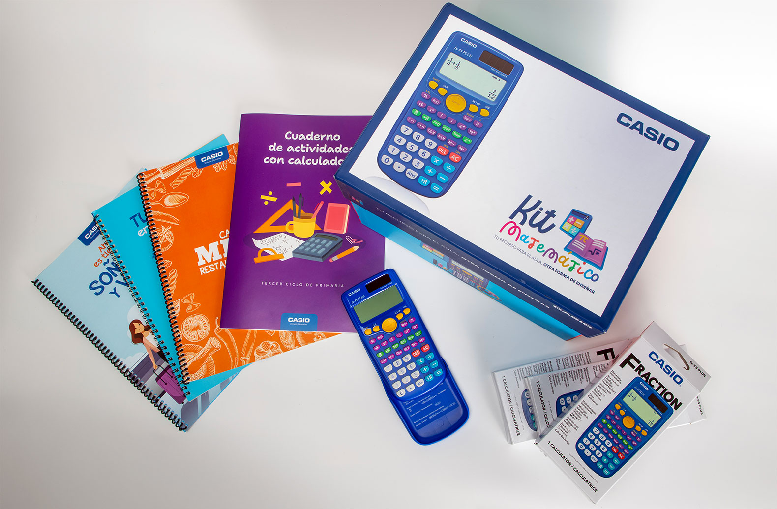 El KIT MATEMÁTICO se compone de una caja con 20 unidades de la fx-55PLUS, para guardar las calculadoras en clase y materiales educativos para aplicar en el aula.