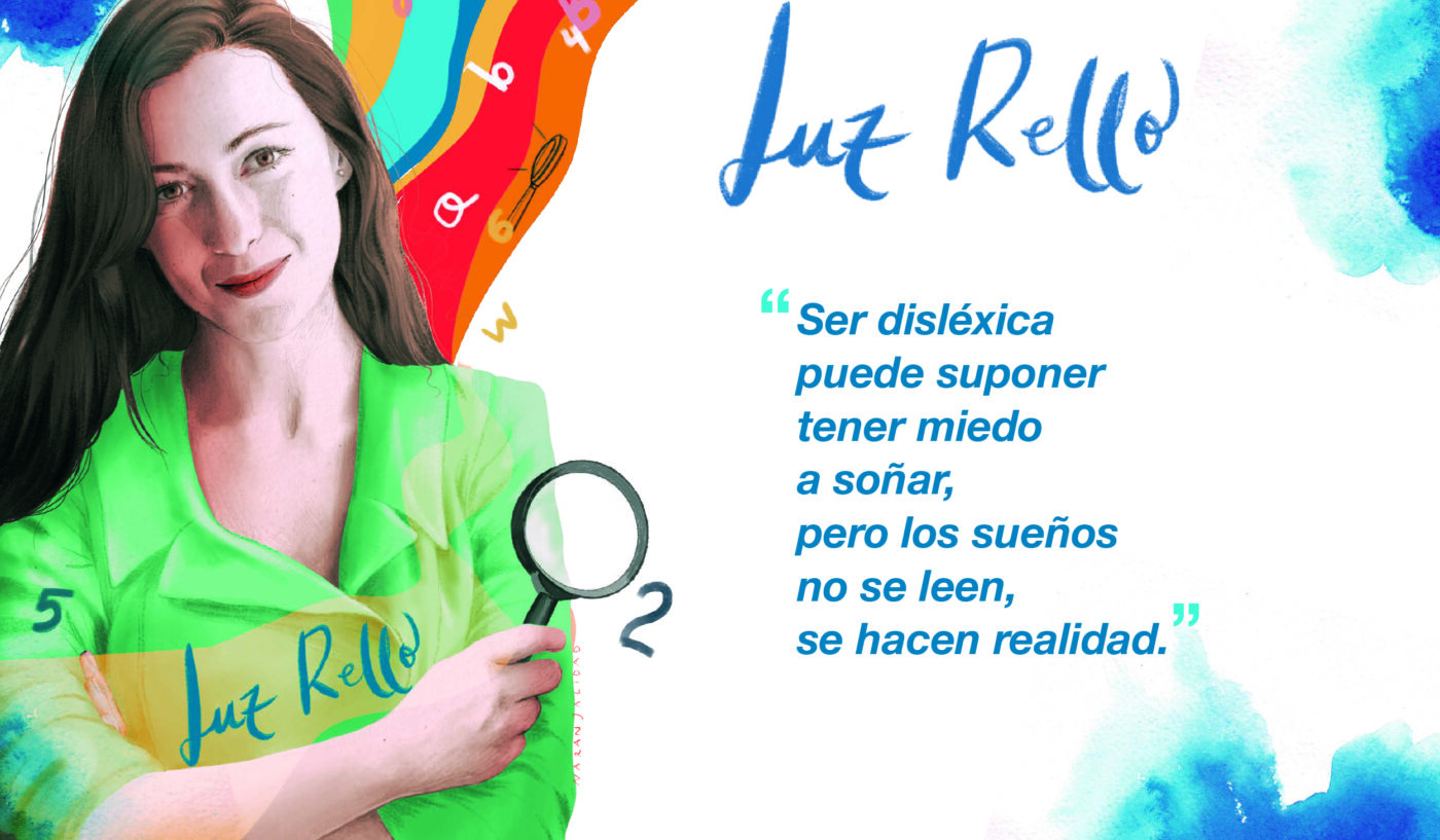 Luz Rello descubrió que tenía dislexia mientras aprendía a leer cuando era pequeña, aunque en ese momento no sabía darle un nombre a su dificultad con las palabras. A los 10 años, le diagnosticaron dislexia, lo que provocó una dificultad en su aprendizaje, pero gracias a sus profesores y profesoras su rendimiento académico fue mejorando.